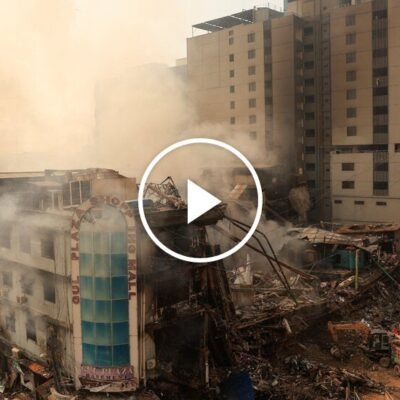new video loaded: Fire at Pakistani Mall Leaves Over 20 Dead A fire tore through one of the busiest wholesale markets in downtown Karachi, Pakistan,