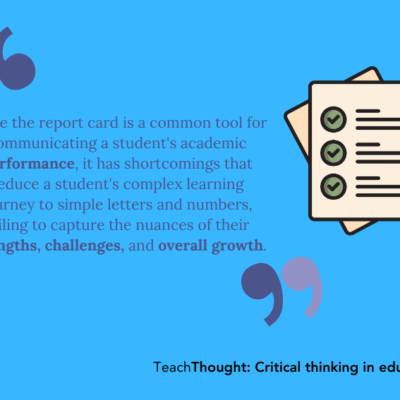 15 Alternatives To Report Cards In The K-12 Classroom by TeachThought Staff Like lunchboxes (or brown paper sacks), field trips, and textbooks, report cards are